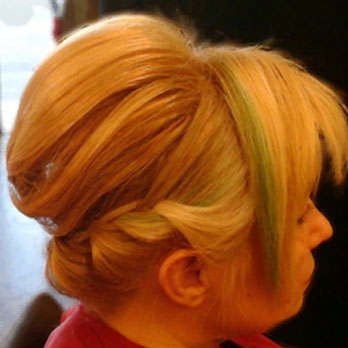 La clienta tiene una melena por el hombro. Se trabaja la melena con la técnica del brushing, se crepa la zona de la coronilla para crear volúmenes.